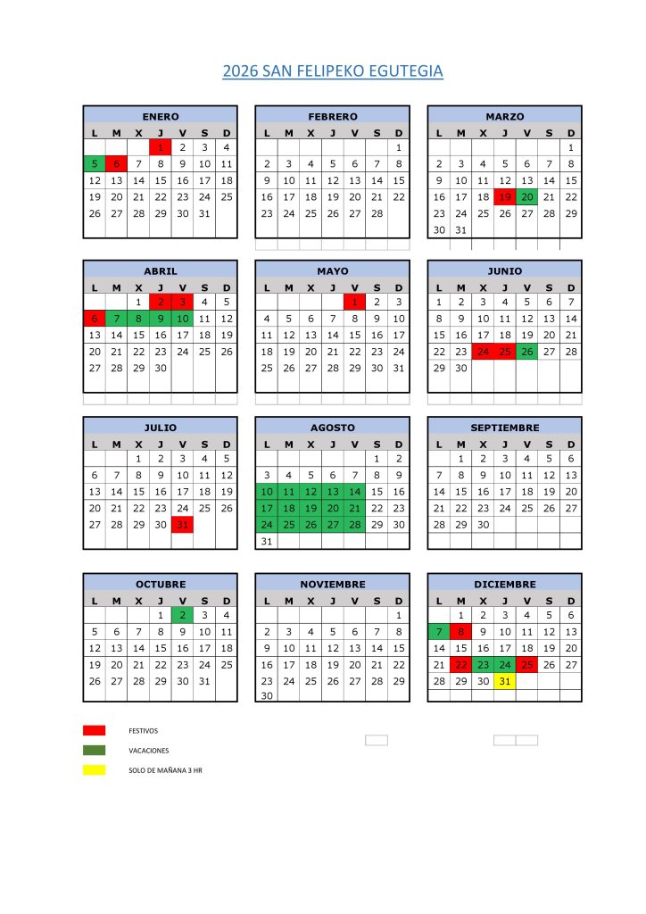 Calendario de oficina 2026